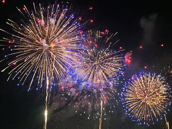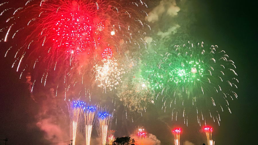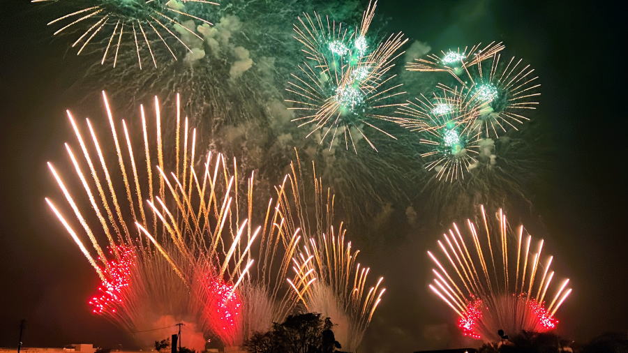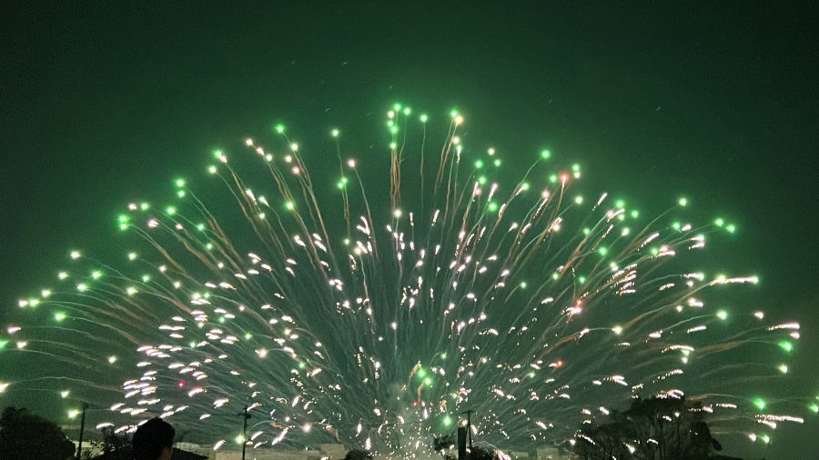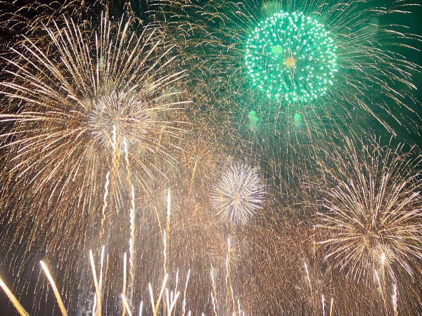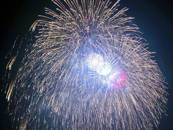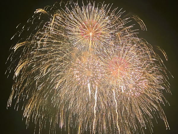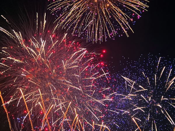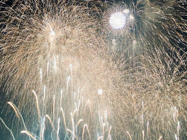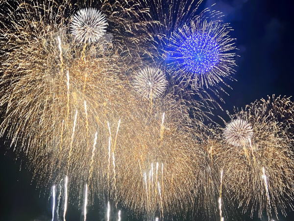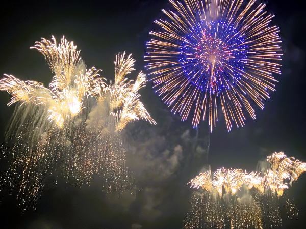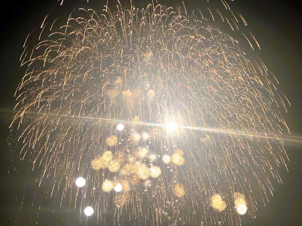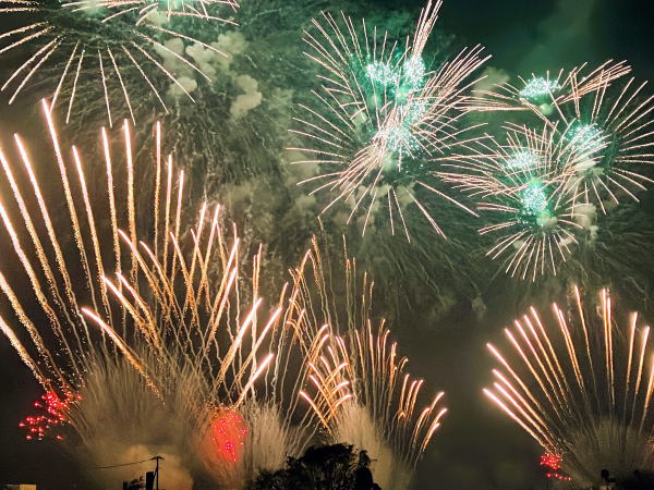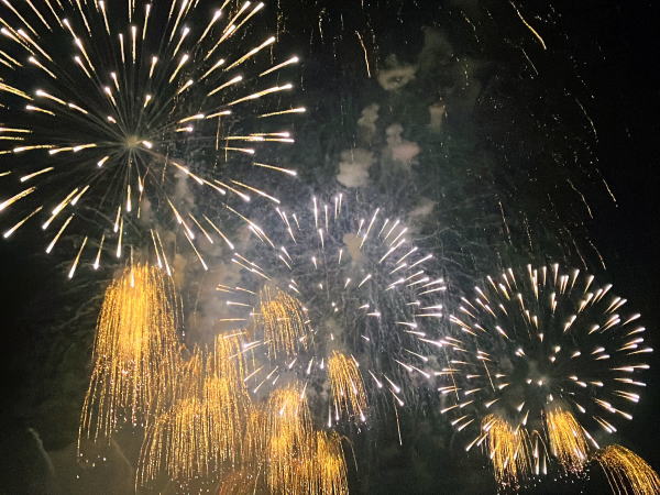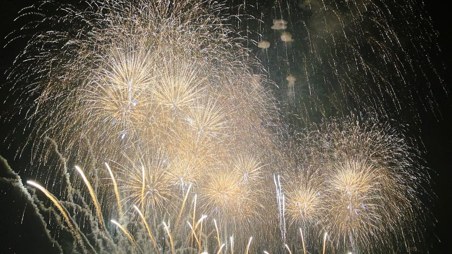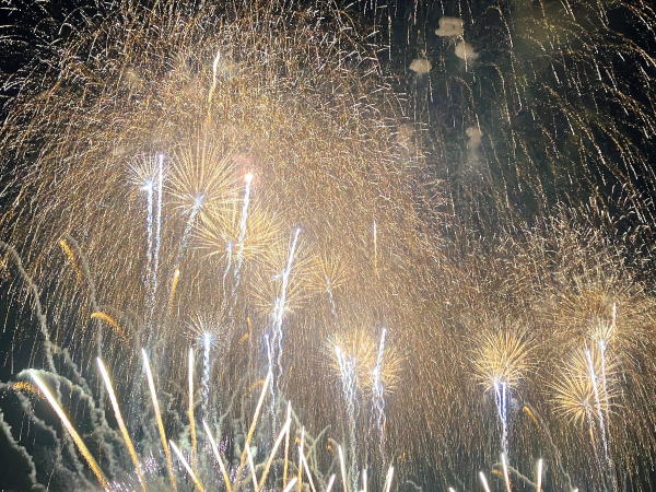 花火が地上に落ちて爆発。約20分後に再開!怪我人なしで良かった。