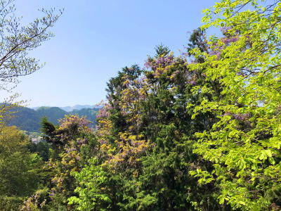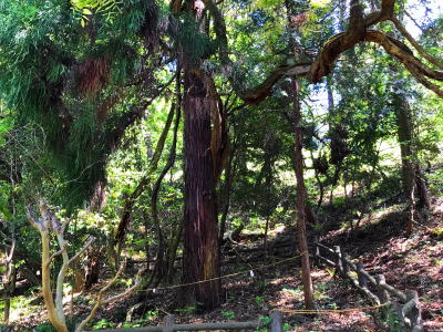 都の天然記念物に指定。樹齢400年、根元の周囲は約3m。