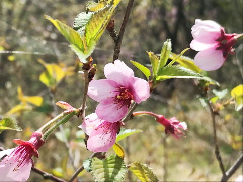 「ホシザクラ」は、「マメザクラ」と「エドヒガンザクラ」の交合種で「種子」が出来ない為、 親木の根が伸びた先に子株が生じて繁殖(クローン繁殖)する「桜」です。 環境省の「レッドリスト」において「絶滅危惧種1A類」に選定され、 生息は約100株ほどしかない貴重な「桜」です。