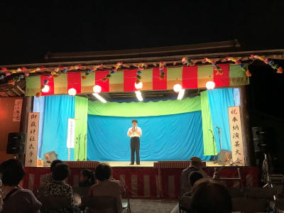 この度ご縁があり、初めて「新明神社例大祭奉納演芸」で「歌謡ショー」をさせて頂きました。音響の中島様、司会の小山様、役員の皆様に盛大に盛り上げて頂き、ありがとございました。是非、来年も唄わせて頂ければと思います。とても楽しい時間でした。