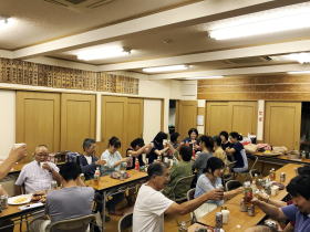 17時からの報告会に間に合いました。資料作成と会場作りは事前に行っていたので、良かったです。会議も無事終了し、その後の懇親会で、皆さんと労をねぎらいました。本当にお疲れ様でした。