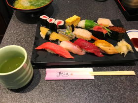 今日は、18時30分から「みんなのコンサート IN SHIBUYA」に行く前に、「すざんまい」で食べました。築地では、残念ながら、食べる事が出来ず、やっと念願が叶いました。「美味しいお寿司」に大満足でした。こらから「川中美幸さんのBarまいどおおきに、かわなか」で行われるLIVEに行きます。
