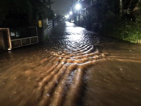 12日(土)台風19号が大接近との事で、座長は、町内会長でもあるので、避難所の「小山市民センター」、「小山中学校」に行き、状況確認や町内会で出来る事などを市役所の皆様と確認しました。11時頃の時点では、すでに沢山の皆さんが避難していましたので、いかに今回の台風19号が凄いかが分かります。その後、境川、上沼公園と何回となく、巡回しました。境川も21時時点で、あと50cm位の所まで水位が上がり氾濫寸前でした。また、「うたかま付近の道路」でも、一時川のようになり、ビックリしました。その後、雨と風が止み、「ホッと一安心」となりました。・