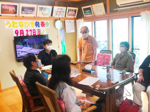今日は、8月行事「第8回うたなかま夏祭り」の4回目を行いました。今日も皆さんと楽しく盛り上がりました。最終日だったので、景品も大盤振る舞いでした。今年は、新型コロナウイルスの感染拡大により、地域の夏祭りが全て中止になってしまいましたが、「うたなかま」では、「熱く夏祭り」を行う事が出来て、本当に良かったと思います。スタッフの皆さんも本当にお疲れ様でした。9月は、いよいよ「第8回うたなかま発表会」です。皆さんと共に、27日(日)の大成功に向けて、一生懸命に頑張って行きたいと思います。