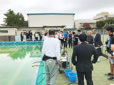 13時30分から小山小学校で「2019年度第2回避難施設関係連絡会が行われました。小山小学校は「地震等」の場合の避難施設になります。防災研修会では、「体育館の解除方法」「マンホールトイレの確認」「濾水機等の確認」「防災備蓄倉庫の確認」「灯光器の確認」が行われました。特に興味深かったのは、「プールの水を飲み水にする事」や「マンホールトイレの設営」でした。いつくるか分からない「災害時」に何が出来るか真剣に考えなければいかないと思いました。