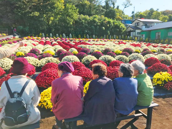 11月外出行事が今日から始まりました。「新磯のざる菊花」は満開です。秋晴れの最高のお天気の中、皆さんの笑顔を見る事が出来て本当に良かったです。明日も行きます。