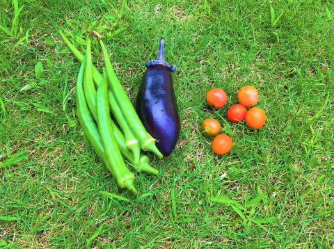 | 大きなスイカと茄子 |