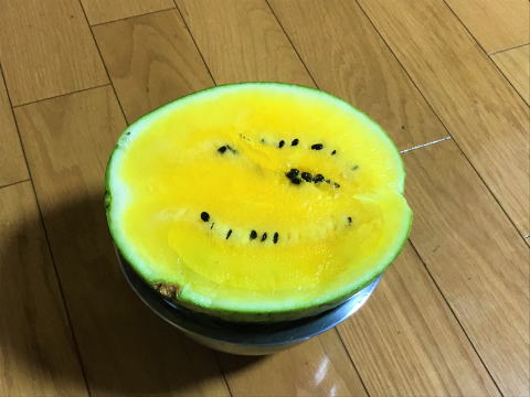 小山田のTさんの畑で取れた「スイカ」です。見た目は小さいですが、かなりの重さで、立派なスイカでした。味も良く、とても美味しかったです。ご馳走様でした。Tさん、また取れたらよろしくお願い致します。
