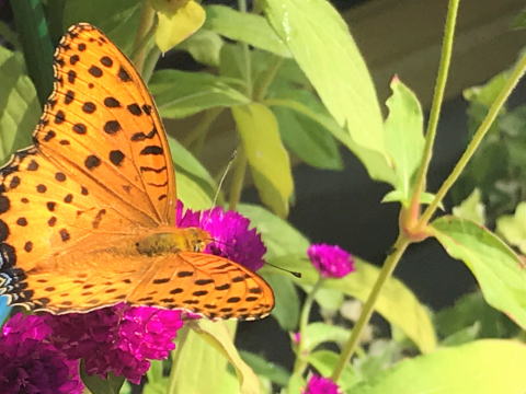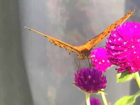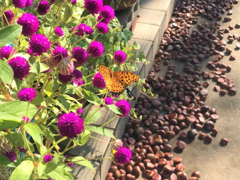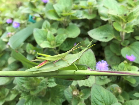庭の花壇の手入れをしてると「バッタの親子」を見つけました。子供がしっかり「お母さんバッタ?お父さんバッタ?」に掴まって可愛らしく、和ませて貰った瞬間でした。