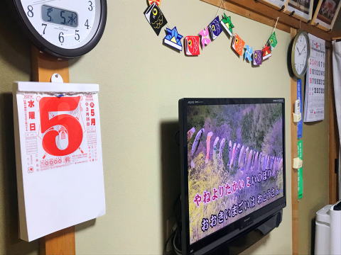 交流会終了後に「Y・M様」に床の段差解消と床の張替工事をして頂きました。トイレを使用する割合が多いので、段差解消は、とても助かります。一人で、たった1日半で見事な「職人技」で素晴らしい床になりました。本当にありがとうございました。明日「うたなかまの皆さん」は、気が付くでしょうか?楽しみです。また、坂倉電気さんに23日(金)にDAMの機種が変更となる関係で、HDMIの配線工事をして頂きました。これもまた、職人技で、設置して頂きました。ありがとうございました。