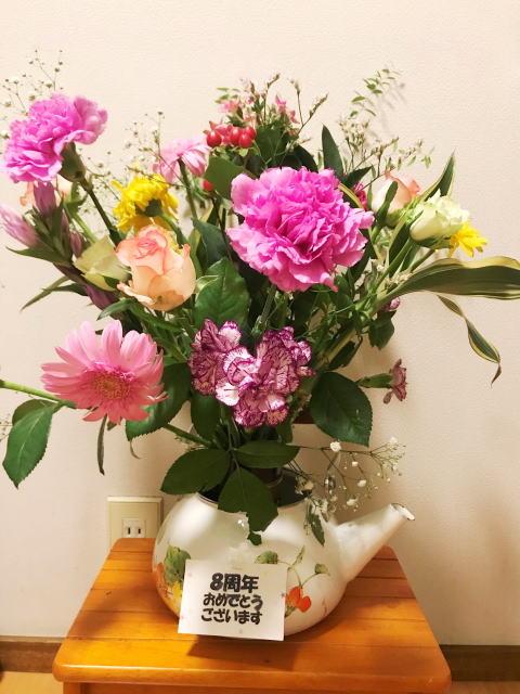 本日、10月1日で「うたなかま」も8周年を迎え、9年目に入りました。皆様方のご協力のお陰で、ここまで何とか開演できた事を心から御礼致します。いつもこの日を迎えると、平成24年10月1日にご利用者様2名でのスタートを思い出します。これからも平成24年10月1日の「初心を忘れず」に一生懸命に頑張っていきたいと思います。「うたなかまの皆様」、「スタッフの皆様」今後共、よろしくお願い致します。