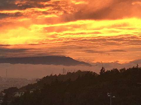帰りの送迎の道中、「戦車道路」で綺麗な「夕焼けと雲海?」を見る事が出来ました。「皆さん」綺麗だ~と感激したご様子で、とてもラッキーでした。写真より実際の「夕焼けと雲海?」はもっと綺麗でした。