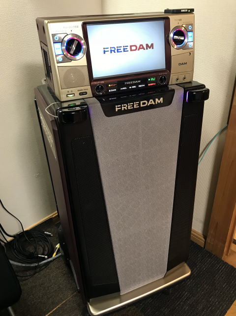 本日、新しい「FREEDAM HD」に機種が変更となりました。今回の機種は、約11万曲入っていて、映像も素晴らしいです。スピーカーも2ヶ所、天井吊にしました。26日(月)から使用する予定です。これから楽しみです。