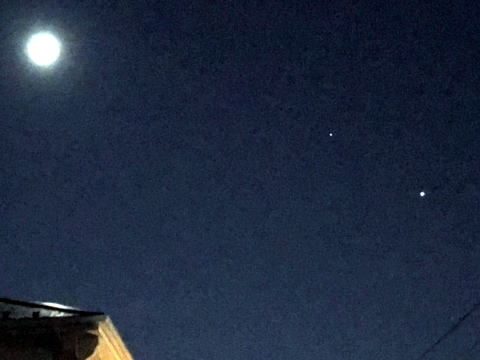 月・木星・土星の最接近を今日も見ました。前回と向きが逆になっていて、かなり近くに見えました。31日(土)は、最小の満月が見えるとの事で、これもまた楽しみです。