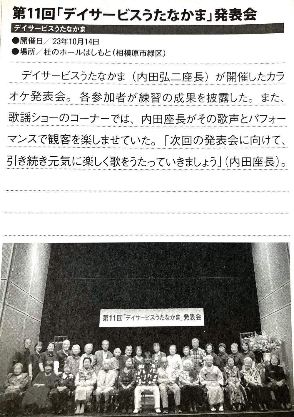 | 第11回「デイサービスうたなかま」発表会 |
