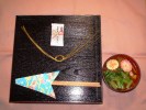 赤飯、雑煮(鶏肉、大根、人参、寿かまぼこ、小松菜)、ぶり照り焼き(大葉)、煮しめ(八つ頭、牛蒡、こんにゃく、椎茸、うづら玉子、人参、菜の花)、紅白かまぼこ、伊達巻、黒豆、栗渋皮煮、なます、大根、人参、柚子、フルーツ:イチゴ |