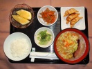 ごはん、棒ラーメン(キャベツ、人参、チャーシュー、長ネギ)、揚げギョーザ、金平ごぼう、ブロッコリーの胡麻ドレ和え、フルーツ:グレープフルーツ |