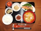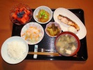 ごはん、味噌汁(豆腐、あげ、ワカメ、万能ネギ)、いなだ白醤油焼き(大根おろし、甘酢生姜酢の物)、豚肉と大根煮(枝豆添え)、キャベツと人参柚子皮和え物、キュウリ和風ピクルス漬け、フルーツ:スイカ・ブルーベリー |