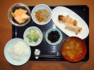 ごはん、味噌汁(白菜、椎茸、三つ葉)、からすガレイ塩こうじ焼き、根菜煮物(レンコン、人参、牛蒡、白胡麻)、ブロッコリーの胡麻ドレ和え、黒豆煮、フルーツ:ハネージュメロン |