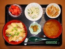 ヒレカツ丼(玉ネギ、たまご、グリーンピース)、味噌汁(とうがん、椎茸)、金平ごぼう(すり胡麻)、酢の物(もやし、キュウリ、竹輪)、キュウリ奈良漬け、フルーツ:スイカ(紅まくら) |
