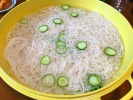 流しそうめん(みょうが、ネギ)、いなり寿司(がり)、たこ焼き、枝豆、フライドポテト、ミニウインナー、竹輪(キュウリ・チーズ)、ミニトマト、サニーレタス、エビ揚げ、スイカ おやつ:カキ氷(あずき抹茶、イチゴ、メロン) |