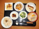 とりごぼうご飯、のっぺい汁(里芋、人参、大根、白菜、あげ、さつま揚げ、しめじ、こんやく)、ぶりの照り焼き(カボス添え)、いもがら煮物(あげ、さつま揚げ、人参、糸こんにゃく)、大根味噌田楽(刻み柚子添え)、小松菜炒め(ちりめんじゃこ、あげ)、フルーツ:りんごコンポート(レーズン入り) |