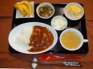 ポークカレーライス(豚肉、じゃがいも、人参、たまねぎ)、オニオンコンソメスープ(パセコン)、マカロニポテトサラダ(キュウリ、人参、ロースハム)、もずく酢(キュウリ)、長芋梅しそ漬け、フルーツ:日向サマーオレンジ |
