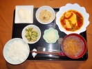 麦ごはん、味噌汁(白菜、しいたけ、あげ)、麻婆茄子(豚挽肉)、とろろ芋(青のり)、じゃがいも金平、ゆで栗、こんにゃく煮、フルーツ:スイカ |