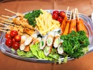 流しそーめん、焼き鳥、チキン、フランクフルト、たこ焼き、キュウリ竹輪・チーズ、フライドポテト、ミニトマト、サニーレタス、枝豆、フルーツ:スイカ*乾杯:ノンアルコールビール、おやつ:かき氷(あずき、メロン、イチゴ) |