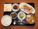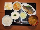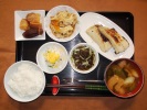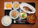 ごはん、味噌汁(白菜、しめじ、あげ)、いなだ塩こうじ焼き、じゃがいもの粉ふき煮、煮やっこ(万能ネギ)、白菜おひたし(おかか)、フルーツ:柿(次郎) |