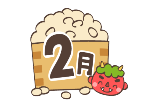 恵方巻き、豚汁(大根、人参、里芋、ごぼう、こんにゃく、豆腐、長ネギ)、かぼちゃいとこ煮、水菜おひたし(おかか)、大根ゆず漬け物、フルーツ:バナナ(ブルーベリーソースがけ) |