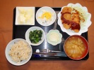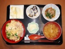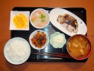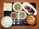 ごはん、味噌汁(豆腐、あげ、椎茸、長ネギ)、いなだ西京漬け焼き、ソフト揚げ大根おろし刻みオクラ和え、水菜おひたし(おかか)、芋がら煮(人参、こんにゃく、あげ、さつま揚げ、竹輪)、フルーツ:リンゴ |