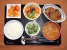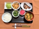 ごはん、味噌汁(白菜、椎茸、あげ)、麻婆茄子(豚挽肉)、田舎煮(大根、人参、椎茸、竹輪、さつま揚げ、あげ、いんげん)、ブロッコリー胡麻ドレ和え、フルーツ:柿 |