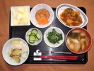 さつま芋ごはん、味噌汁(大根、あげ、大根葉)、豆腐挽肉あんかけ(万能ネギ)、レンコンの炒め煮、白菜のおひたし中華風(白すり胡麻)、大根のべったら漬け、フルーツ:リンゴ |
