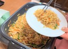 特製やきそば(豚肉、キャベツ、人参、ピーマン、もやし)、味噌汁(白菜、しめじ)、フルーツ:リンゴ |