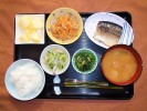ごはん、味噌汁(おふ、しめじ、長ネギ)、鯖の塩焼き、切り干し大根煮(人参、あげ、竹輪、さつま揚げ)、キュウリ・もやし・竹輪の酢の物、ほうれん草なめ茸和え、フルーツ:リンゴ |