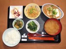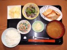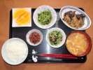 ごはん、味噌汁(白菜、なめこ)、いなだ白醤油焼き(大葉)、田舎煮(大根、人参、こんにゃく、椎茸、竹輪、さつま揚げ)、酢の物(もやし、キュウリ、竹輪、白のすり胡麻)、うずら豆煮、フルーツ:伊予柑 |