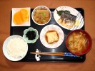 ごはん、味噌汁(白菜、しめじ、あげ)、鯖の塩焼き(大葉、かぼす)、大根とシーチキン煮(大根葉)、揚げ出し豆腐、つぼ漬けこんぶ、フルーツ:ネーブルオレンジ |