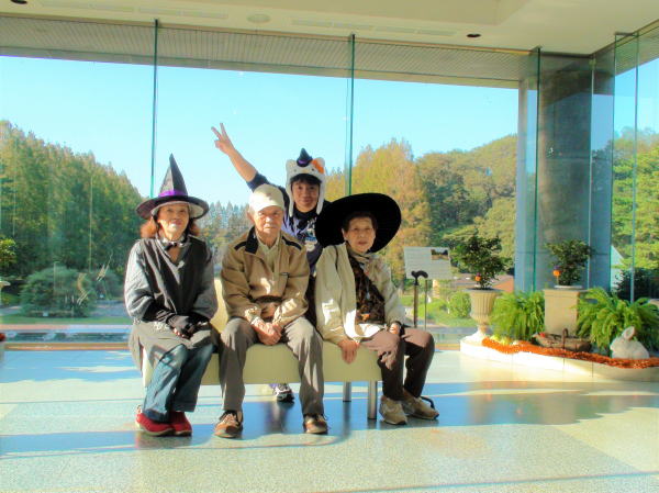 秋晴れの本日は、神奈川県立相模原公園にご利用者様2名で行きました。相模原公園は麻溝公園に隣接しているのですが、麻溝公園は市立で、相模原公園は県立との事です。グリーンハウスはまるで、南国に来たかのようでした。とても綺麗に管理されていて、とても気持ちの良い公園でした。(ハロウィンの衣装を着てハイポーズ!!)