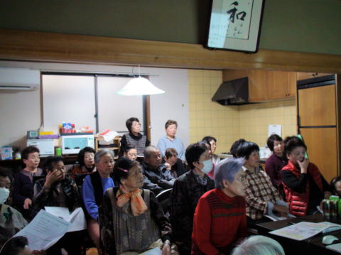 今年最後の開演日です。クリスマス週間を1週送れてしまい、28日だというのにクリスマス会を行いました。ビンゴゲームは思った以上に盛り上がりました。皆様ささやかな景品を貰って頂きありがとうございました。(包装紙は座長が夜なべで包みました。多少の緩みはすみません)昨日お誕生日のご利用者様の誕生会も行いました。おめでとうございます。その後は歌合戦で盛り上がりました。お陰様で、10月1日に開所して3ヶ月が経ち、「うたなかま」も沢山集まっていただけるようになり、ただただ感謝の気持ちで一杯です。本当に本当にありがとうございました。来年は4日(金)から開演です。風邪など引かないように元気にお会い致しましょう。