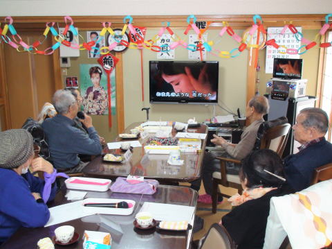 新年明けましておめでとうございます。今年も職員一同まごころ込めてご支援させて頂きますので、よろしくお願い致します。寒い日が続きますが、体調には十分に気を付けて、歌を唄い元気に毎日をともに過ごしたいと思います。年末から年始にかけて1週間お休みを頂きましたが、あっという間でした。皆様はどのようにお過ごしだったでしょうか?本日は今年最初の開演日です。お休みもなく、皆様に来て頂き本当に良かったです。午前中は体操と発声練習等の後、唄い初めをしました。皆様の喉の調子も良好でした。昼食は、お正月膳を頂きました。本当にKさん、Mさんの作る食事は最高です。「うたなかま」にいながら料亭に来たようです。皆様、大変満足されていました。午後も機能訓練と発声練習等の後に歌を唄いました。「うたなかま」の良い所は、会話も弾み楽しい所です。歌よりも盛り上がる時もあり、あっという間の1日でした。来週も月曜日も楽しみです。