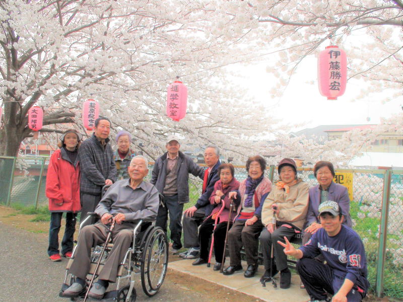 今年は開花宣言が早く発表され、大慌てで、お花見の計画を立てました。25日(月)から1週間お花見に行きました。25日(月)はあいにくの雨で、急遽アイスを食べに行きました。少し寒かったけど濃厚アイスに皆さん満足して頂けました。26日(火)は乞田川と大泉寺に行きました。桜満開でした。27日(水)はあいにくの雨でしたので、車窓からですが、小山田の桜を見に行きました。28日(木)と29日(金)は片所から坂本橋まで境川のサイクリング道路を散策し、桜と色々な花を観賞しました。こんな近くに素晴らしい桜スポットがあるなんてと皆さん本当に喜んで頂きました。1週間無事にお花見に行く事が出きたので、本当に良かったです。