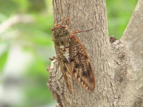 暑い日が続きますが、セミの声がほとんど聞えないのは気のせいでしょうか?そんな事を思っていたら偶然に「うたなかま」の庭の木に何とセミを発見しました。しばらく見ていましたがとうとうセミは鳴きませんでした。何故でしょう?セミも住みにくい環境になっているのでしょうか?本当に心配です。