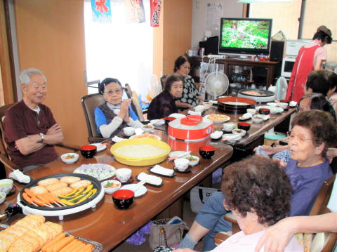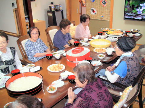 今年の夏はもの凄く暑く本当にどうなってしまってるのでしょうか?そんな中、夏はお祭りという事で、「第1回うたなかま夏祭り」を上記の日程で開催致しました。お昼を兼ねた夏祭りには、定番のたこ焼きや流しソーメン、フランクフルトなどなど沢山あり、お腹は大満足でした。おやつはこれまた夏の定番のかき氷ありと、夏祭りを満喫しました。そして、屋台コーナーでは、ヨーヨー釣りや輪投げなどで大盛り上がり、大爆笑の5日間でした。皆さんが口々に、昔に戻ったみたいだったと大変喜ばれて嬉しかったです。来年はどんな企画で盛り上げようか?考えるだけでも今から楽しみです。ご利用者様、職員の皆様も本当にお疲れ様でした。