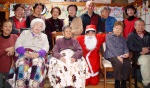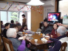 今回のクリスマス会の景品は凄いです。座長賞で、魚沼産こしひかり新米(2kgが精一杯です)金額の割には人気が...シクラメンなどの花が人気です。今日も盛り上がりましたよ。明日は25日クリスマス会の最終日です。最終日はもうひと盛り上がりしますよ。(左は豪華景品の数々、真中はティータイム、右は皆さんでハイチーズ))