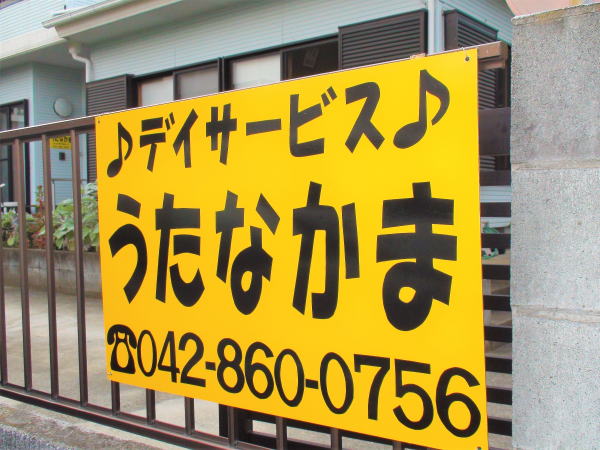 いよいよ夏本番!!8月に入りました。今日は、「うたなかま」の看板を付け替えました。座長手作りで、製作費2,000円程です。今回は防水・紫外線対策を致しました。近くで見ると多少の難はありますが、その辺はご愛嬌で。完成した充実感がとてもありました。