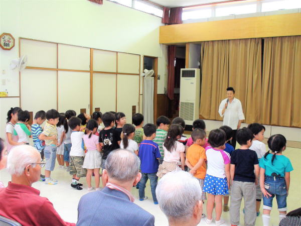 今日は、小山保育園「敬老の集い」に「うたなかま水曜日の10名の皆さん」と参加しました。園児の可愛らしい一生懸命に唄う姿に、心が和みました。そして職員の一輪車(とても上手でビックリしました)の披露があり、また、昔懐かしい、「あやとり」や「お手玉」「けん玉」「こま」などで園児たちと交流を図り、とても楽しい時間を過ごさせて頂きました。園長先生始め担当の先生方、職員の皆様、ありがとうございました。また是非、このような機会を作って欲しいと思いました。午後は、少しお疲れも見えましたが、歌が始まると盛り上がりました。「水曜日のうたなかま」元気ありありで、恐るべし。皆さんお疲れ様でした。
