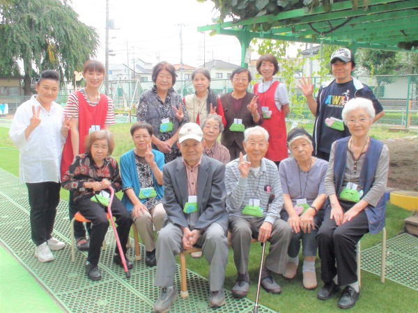 秋晴れの中、祝1周年第1回うたなかま発表会が行われました。発表会にむけて事前に何回もスタッフと打ち合わせをして頑張ってきました。思いは、発表会が楽しい会になり、うたなかまの皆さんが笑顔でお帰りになる事を祈りながら、また、皆さんに怪我や体調不良等が出ずに、無事に行われますようにと願いながら、朝9時から会場作りから始まりました。客席は約100席を用意。今回は関係者様のみ、お声をかけさせて頂きました。今回の試みは全てが初めてですので、かなりの不安がありました。会場作りも音響も何もかも少ないスタッフ(座長を入れて6名)で全て行いました。当日の演目は、第1部は「うたなかまの皆様の歌唱」、第2部は「座長の歌謡ショー」で構成しました。うたなかまの皆様の発表会への出席率が良く、法事や家族旅行の理由以外は欠席者はなく、実に90%でした。本当に有難いと思いました。そして開始時間直前になり、思った以上に会場が埋まり、熱気がだんだんと伝わってきました。いよいよ11時45分となり、座長の挨拶から始まり、スタッフ紹介を行い、12時となり第1部の歌唱が始まりました。全ての皆さんの歌唱を聴いていて、真剣な表情や一生懸命唄われている姿に感激のあまり、目頭が熱くなり、うるうるしそうになりました。うたなかまの皆さんは、ほとんど舞台経験がない人達が多い中、普段の実力以上の力を出し、素晴らしい歌唱を披露してくれました。1部の最後は、98歳のKさんに歌を唄って頂きました。元気良くとても上手でした。しかもアンコールがかかり、アカペラで「あいや節」を唄ってくれました。本当に98歳かと思うような歌唱でした。そして、お楽しみ歌唱ショーでは、ご利用者様のSさんとスタッフのKさんと結成したユニット「うたねーず」による「麦畑」は大歓声の中、大盛り上がりでした。Sさん、Kさん唄って頂き、有難うございました。無事、第1部が終了し、第2部「座長の歌唱ショー」も盛大なうちに終了しました。最後にうたなかま最年長98歳のKさんに花束を頂きました。本当に嬉しかったです。