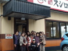 今日は、金曜日のメンバーの皆さんと外出行事を予定していたのですが、台風27号が接近中で、雨がひどい為、外出(紅葉狩り)は中止になり、昼食として「スシロー」に皆でお寿司を食べに行きました。紅葉狩りは後日行く事となりました。スシローは事前の予約が出来ないとの事でしたので、11時過ぎに職員が行ってテーブル席を2つを取ったのを確認して、現地に行きました。車で10分もかからないので、スムーズに席に座れました。色々なお寿司や茶わん蒸しなど、皆さんお腹いっぱい召し上がっていました。締めはデザートを食べ、あっという間に13時を過ぎてしまいました。「また行きたいね」との声が多く聞かれました。皆で食べると楽しいし、食が進みます。金曜日のメンバーの仲がまた良くなったと感じました。