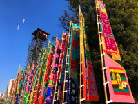 毎年「新磯ざる菊愛好会」主催による「花見会」が開催され、紅・白・黄・ピンクなどの約10種類、約1300株の花が大勢の来場者の目を楽しませています。今年(平成29年)で9回目を迎える「花見会」は新磯地区の秋の風物詩として定着しました。との事です。皆さん是非、行って見て下さい。詳細は、「新磯ざる菊花見会」で検索して下さい。